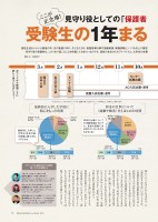 見守り役としての「保護者 受験生の1年まる 高校生活もいよいよ最後の年。次の進路に向け、子どもたちは、進路指導行事や受験勉強、模擬試験と、いつも以上に喜怒構成・文/長島佳子三重大学 工学部・分子素材工学科庄村大輝さん(三重県立津高校卒)東洋大学 理工学部・都市環境デザイン学科川越貴水さん(宮崎県立宮崎大宮高校卒)国際基督教大学(ICU)教養部・アーツ・サイエンス学科宝中祥太さん(私立浦和ルーテル学院高校卒)高校時代はサッカー部の副キャプテン。文武両道の部活で仲間の大半が現役で国立大学へ。自然や河川を愛し、数字が好きという“リケジョ”ならぬ“ドボジョ(土木女子)”。高校時代は生徒会長。ICUには指定校推薦で入学。鉄道をこよなく愛し、私鉄駅でバイト中。関心というわけにもいきません。どの程度寄り添えばいいのでしょうか。「保護者対象の進路説明会では、入試制度や大学の特色が昔とは大きく変わっていることをお話しします。わからないのは保護者も子どもも同じ。子ども自身の人生だからとまかせきりにするのは、高校3年生には荷が重すぎます。決めるのは生徒ですが、一緒に調べようと誘うなど、常に子どものことを気にかけ見守っていることは伝えたいものです。受験は本人だけでなく、仲間、学校、家庭で取り組む『団体戦』です」。 3年生の1年間に起こることや、保護者の出番について、次のページから時期別に見ていきましょう。「保護者も押さえておきたいポイント」では、笹先生からのアドバイスもいただきました。また、先輩大学生の3名にも当時を振り返ってもらい、時期ごとの気持ちを聞いてみました。次ページから高校3年の1年間を語ってくれる先輩たち次ページから時期ごとに詳しく見ていきましょう!最終的に入学した学校に関心をもった時期将来の仕事について(就職や職業)考えはじめた時期中学まで5.4%中学まで24.2%無回答・その他6.1%無回答・その他14.2%高校1年・計10.8%高校1年・計13.7%高校3年1月~3月高校3年1月~3月高校3年10月~12月高校3年10月~12月(%)(%)高校3年7月~9月高校3年7月~9月高校3年4月~6月高校3年4月~6月高校2年・計21.4%高校2年・計15.0%高校3年・計56.3%高校3年・計32.9%17.611.920.19.810.55.98.25.4無回答無無回答回答14141414.2.22%%%%%%%%%%%%%%高校332.9高校高校高校高校最終的に入学した大学は3年生の後半時期に関心をもつ子どもも将来の仕事についての決断時期はそれぞれ。高校の段階で決め切れていない子どもも少なくないセンター試験出願国公立大学入試AO入試出願・選考推薦入試出願・選考見守り役の保護者も、この1年で起こることを把握しておきたいものです。高校の先生からのアドバイスと、大学生の先輩*このスケジュールはモデルケースです。進路行事、入試スケジュールは学校ごと、年度ごとに異なります。私立大学入試センター試験5