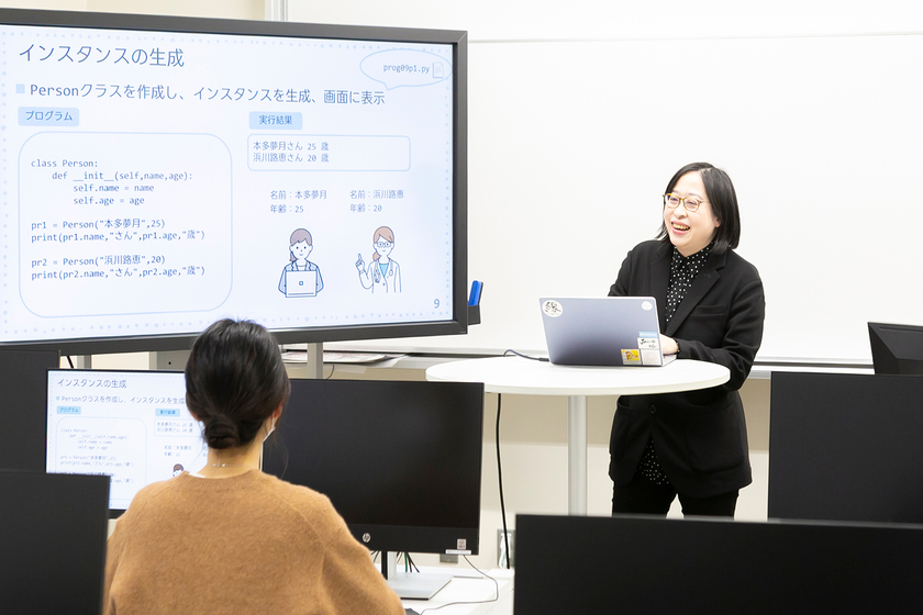 ICTの面白さを体感するには、活用のイメージを持つことが大切です。例えば、「学生一人ひとりの進捗が見えにくい」「人前で質問しづらい」という悩みを解消するため、プログラミングの演習授業では、ゼミの学生が実際に開発した“学習を支援するWebアプリ”を導入しています。このアプリは自分の進み具合を気軽に共有したり、匿名で質問したりできます。教員だけでなく学生同士が教え合える仕組みが、安心して学べる雰囲気を生み出します。身近な問題に取り組み、誰かの役に立つというICTの面白さを体感できる授業です。