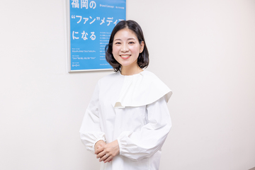 株式会社TVQ九州放送勤務/経済学部 経営情報学科 卒/2013年卒/今後の目標は「まずは報道キャスターとして、正確で分かりやすいニュースを日々伝え続けたいです」と山崎さん(※崎はたつさき)。「テレQはマスメディアではなく“ファン”メディアを目指しています。誰かの“好き”が、ほかの誰かの“好き”になるかも知れない、それをつなげるメディア(媒体)がテレQ=ファンメディアという考えです。私はこの方向性がとても好きです。福岡を毎日多彩なニュースであふれている街にしたいと思います」。