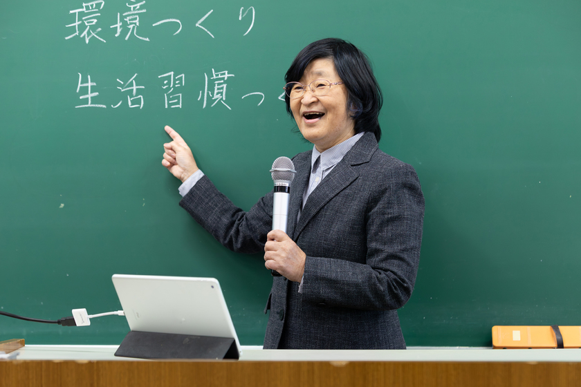 山本教授の授業では、心と体の健康について教えています。大切なのはまず自分自身をよく知ることです。将来、自分らしく楽しく生きるために、自分の心を見つめるところからスタートしてほしいと考えています。