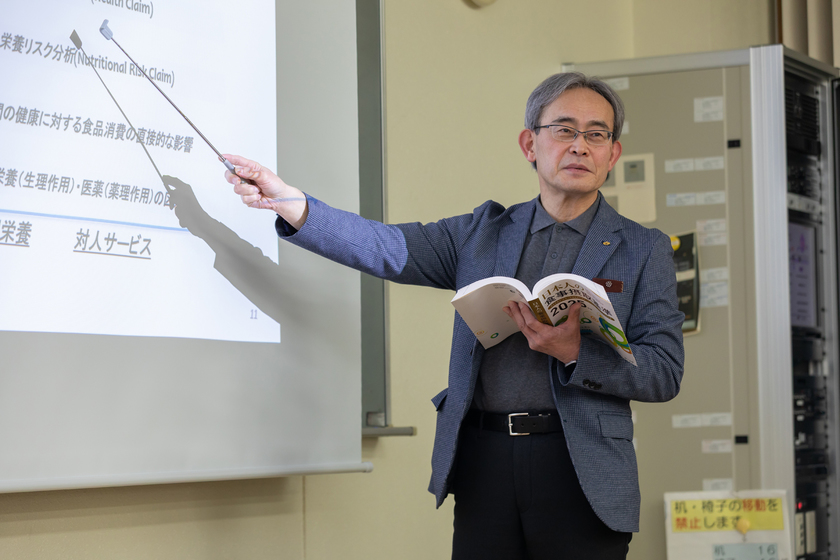 本学は学生が自分の個性に合わせた進路を選べるよう、選択科目を多く設定しています。かつて「ネイリストになりたい」と相談に来た学生には「爪から健康状態を評価できるネイリストになればいい」と背中を押しました。栄養の知識はあらゆる分野で強力な武器になります。多様な興味と栄養学を掛け合わせ、新しい活躍の場を切り拓ける自由な学び場でありたいと考えています。