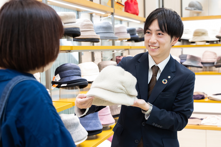 この仕事をしてやりがいを感じるのは、お客様に喜んでいただいたときです。売場に立ち、自分が接客をしたお客様から「買う予定がなかったけど、話をしていたらほしくなったわ」と言っていただき、帽子をご購入いただけたことがありました。ちょうど秋冬物の新作が入荷した時期だったこともあって、楽しくお客様とコミュニケーションを図りながら、新作ラインナップを手に取ってお似合いの帽子をおすすめしました。百貨店の販売員はデパートの「顔」として、そのお店のイメージや信頼性を高める役割を担っていると思います。商品の知識をより深め、言葉遣いや身だしなみにも気を付けて接客にあたるように努めています。
