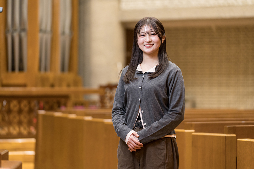 他学科の学生と関われる環境が、この大学の魅力です。保育の専門性を高められるだけでなく、視野も広がります。入学後は、初めてのことにも積極的に挑戦するのがおすすめです。ぜひ一度、大学を見に来てください。