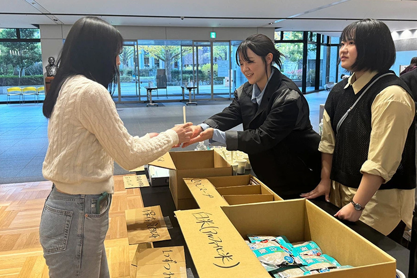 授業では、「現場で知る」「現場で体験する」「現場で学ぶ」ことを大切にしています。「災害で建物が壊れている様子、火災で消失した建物と残った建物の違い、被災地の音や匂い、避難所の暮らしや人々の声などは、映像や写真ではわかりません。そうした現場を知らずに作られた防災対策や支援ツールは、現場で“使えない”ケースが多いと感じます」と村上教授。こうした取り組みの一環として行うワークショップ型の訓練では、炊き出し体験ブースや適切な避難方法をゲーム感覚で学ぶブースなどの運営を行います。