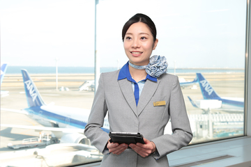 私は現在、全日本空輸株式会社(ANA)の客室乗務員として、国内線・国際線に乗務しています。機内での業務は多岐に渡り、大変だと感じるときもありますが、お客様から感謝の言葉をいただいた時はとてもやりがいを感じます。業務においては先輩・同僚からのアドバイスを通じて、日々自分の成長を実感することができ、サポート体制が万全な働きやすい環境です。今後は、国際線主客乗務員資格とファーストクラスの資格取得を目指し、後輩にも一緒に働きたいと思ってもらえるようスキルアップを図っていきます。