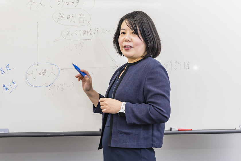 2年次はディスカッションを取り入れて知的財産権法の基礎を学び、3年次では「判例研究」を通して法学部としての基礎力を養うなど、段階を踏んだ学びが魅力。中でも会社設立をシミュレーションし、新製品やサービスを考案して実際に出願まで行うという「起業家体験プログラム」は、アイデア創出から権利化までのプロセスを体験できる、実践に即した取り組みだと好評だ。「知的財産についての知識が必要な昨今、法律家のほか、一般企業の法務部や知的財産部、公務員や警察官など、幅広い業界で活躍できます」と田邉教授は語ってくれた。