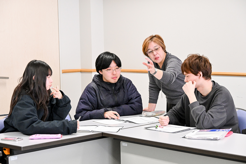 「英語と日本語で読む文学」をテーマに、現代文学作品を題材とした翻訳のプロセスを体験します。まず学生は英訳版を読み、自分なりの理解を深めたうえで、日本語へと再翻訳。さらに原文や他グループの訳と比較しながら、言葉の選び方や解釈の違いを丁寧に検討していきます。そこから見えてくるのは、翻訳には読み手の文化や価値観が反映されるという事実です。授業を通して読み方に一つの正解があるのではないこと、多様な背景によって解釈が広がることを学び、文学を手がかりに異文化理解と柔軟な思考力を養います。語学力だけにとどまらず、グローバルとローカルの視点を往復しながら、他者の考え方を受け止める力を育てることを目指しています。