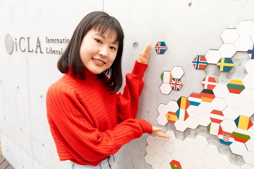 本学部には多くの留学生が在籍しているので、日本にいながら各国の文化に触れることができます。私は何度もオープンキャンパスに足を運び、当時一番興味があった「実践的な英語を学べる環境」に出会えました!