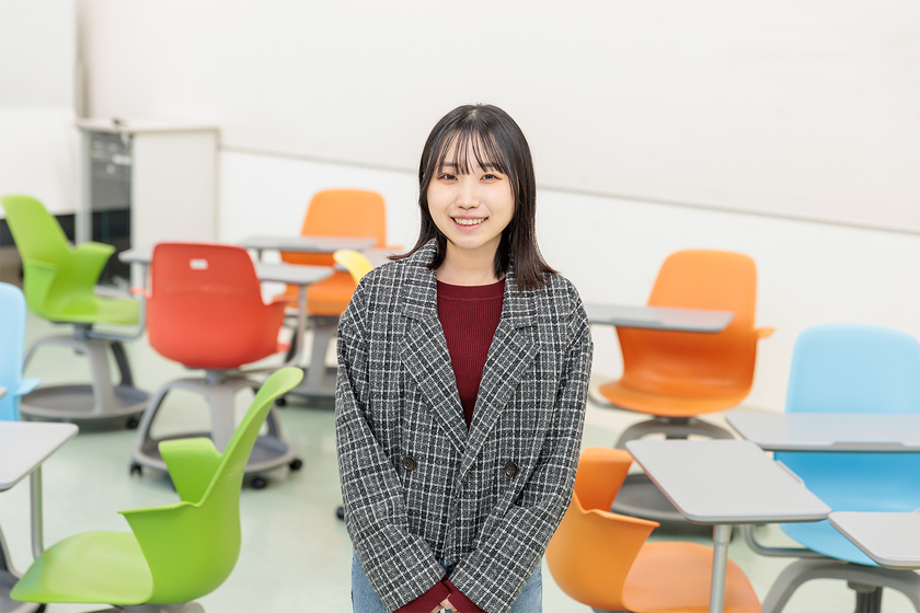 英語の運用能力はもちろん、異文化を相対的に捉える力を磨いています。ネイティブの先生による授業は刺激的で、教科書にはないリアルな感性を学べるのが魅力です。キャンパス内の「ワールドプラザ」では留学生と日常的に交流でき、徳島にいながら世界を身近に感じられる環境が、私の学びをより豊かにしてくれています。