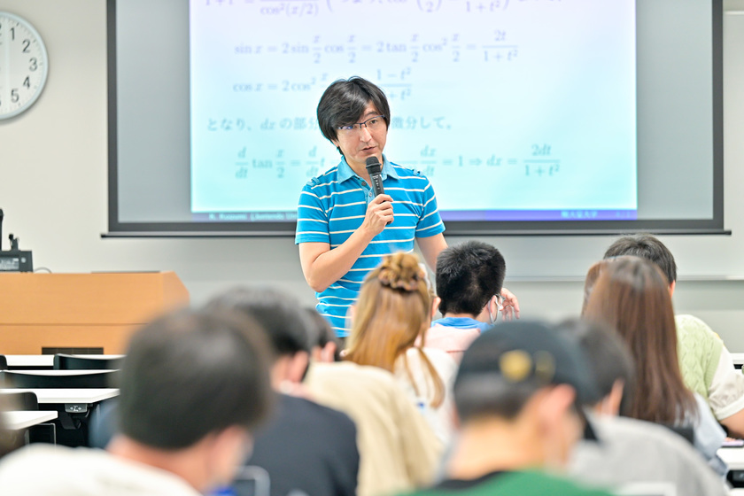 基礎的な科目である「微積分学」を担当している小泉先生。授業では「なぜこの勉強が必要なのか」を意識して学生に伝えているそう。「データサイエンスではスポーツの予測勝率などを算出できますが、なぜ算出できるのかというと、そこには積分などが必要になる…そういう背景の部分を専門家として伝えたいと考えています」。一方、小泉先生の研究室ではサッカーや野球のデータ解析コンペにも積極的に参加しています。プロのデータアナリストらが集まるコンペを通して、現場でデータサイエンスの応用を体感できる機会となっています。