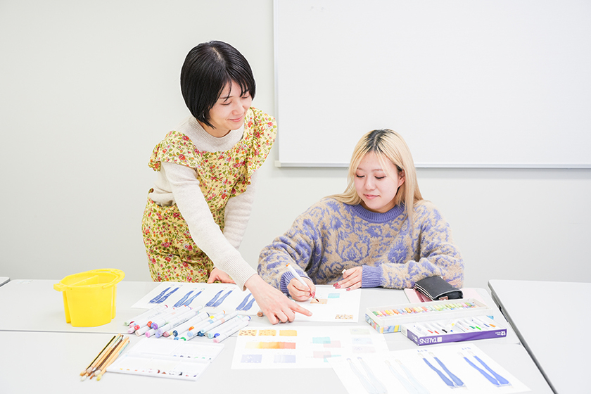 絵が苦手な人でも上達できるよう、人体や服の描き方のポイントを、數井先生はやさしく指導している