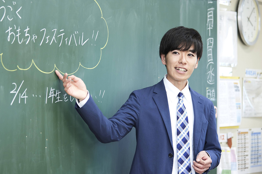 埼玉県久喜市立久喜小学校/人文学部 子ども教育学科(旧:人間福祉学部 児童学科)/2014年3月卒/児童教育に関心を持ち、小学校教諭の免許状などを目指せる聖学院大学に入学。模擬授業を経験したことで教える楽しさを知り、教育実習で子どもの素直さに触れたことで、小学校教諭という仕事の素晴らしさを実感したという。教員採用試験対策では校長経験を持つスタッフの指導が受けられる「教職支援センター」を活用。「一人だったら心が折れていたかもしれない。友人や先生方と築いた信頼関係が支えになりました」と語る。卒業後は公立小学校の教員となる。学力向上主任として児童の学力アップにも貢献し、同僚の教員や校長などからの信頼も厚い。