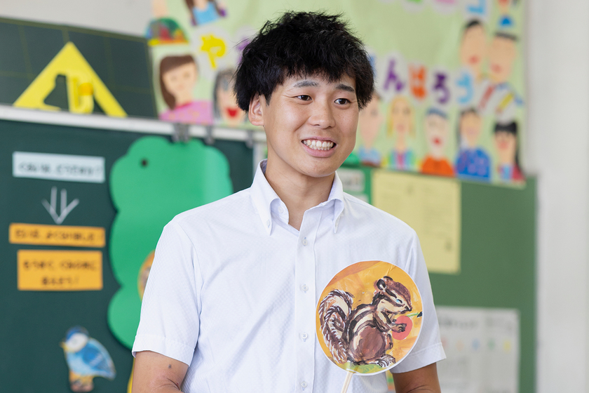 入職当初は高学年を担当し、数年前から低学年を受け持っています。初めて1年生を受け持ったときは、椅子の座り方から教える大変さに戸惑いました。忙しいときにも子どもに寄り添える教師を目指し、「心の距離」を近づけるように努めています。高校時代の部活動での経験。顧問の先生の一言で自分の気持ちが切り替わったことを覚えています。「先生の一言が人の人生を変えることもある。」教員の存在の重みを感じると共に、私も子どもたちを前向きな気持ちにさせてあげられるようになりたいと思い、小学校教員を目指すようになりました。