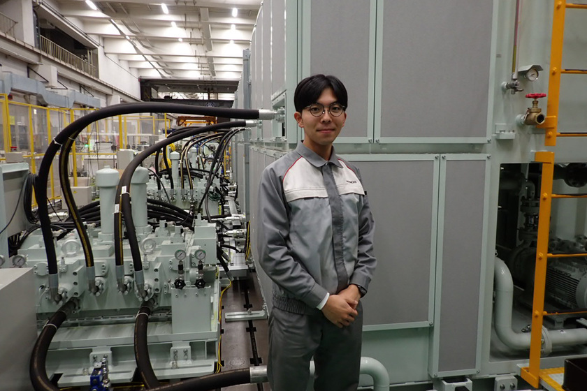 主な仕事は、建設機械に搭載する油圧機器(油圧ポンプ、モータ)の評価をすることです。これから世に出回る開発段階の機械の性能や品質を決める仕事なので、責任感を持って業務にあたっております。この仕事でなければ見られない最先端の技術に触れたり、一般の人が体験できないスケールの大きな試験を行ったりできることが、日々のモチベーションになっています。