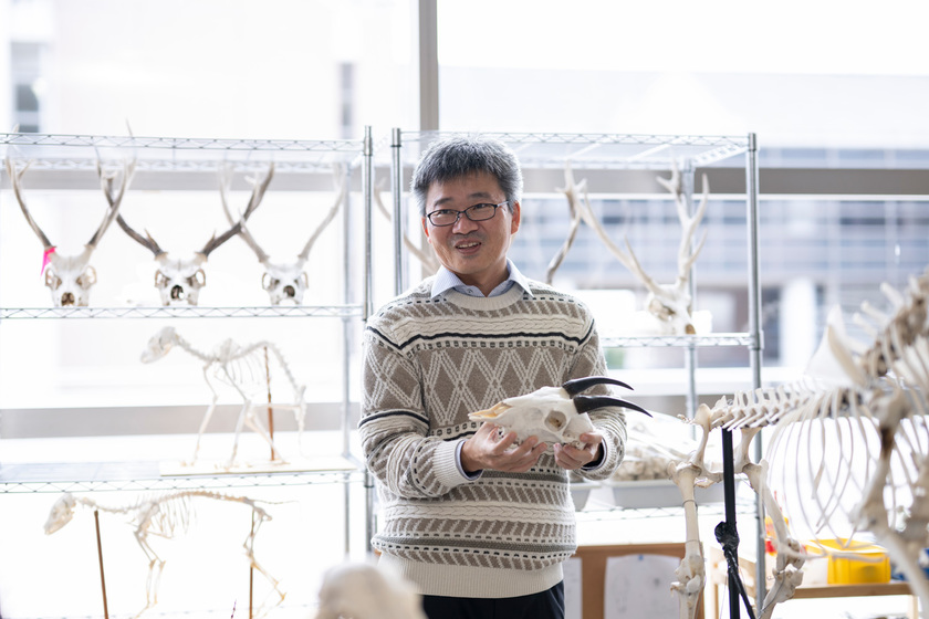 理工学部生物科学科に所属。国内外で、野生動物の行動や生態学的機能の解明に取り組んでいる。学生時代からのフィールドである金華山島では、個体識別されたサルの長期的な観察データなどを基に、動物と植物の相互関係や生態系のつながりについて研究をしている。