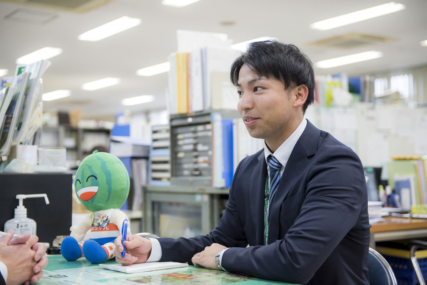 現在は市役所で農政課に勤務しています。市役所での仕事の魅力は、窓口を通して市民の皆様の様々な声を直接聞くことができること。毎回新しい気付きがあり、時にはハッとさせられることもあります。公務員の仕事は、一般企業に比べると派手さはなく、成果も決してわかりやすく目に見えるものとは限りません。しかしそのような中でも、誠実に仕事に取り組んでいれば市民の皆様は信頼を寄せてくれます。現在の勤務先は私が生まれ育った町の市役所であり、窓口に来られるのは地元の方々。抱えている問題を解決して、笑顔を見せてくれた時にとてもやりがいを感じます。
