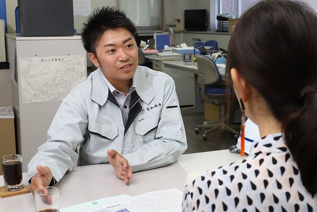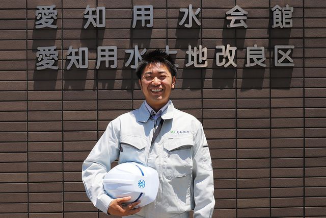愛知用水土地改良区 大府事務所 勤務/商経学部 経営学科/2010年3月卒/2010年4月、愛知用水土地改良区に入社。配水・賦課担当として三好事務所に4年勤務、その後、配水施設の管理・保守取りまとめ業務を本所管理課にて3年経験し現職へ。「2年目、水路の確保に失敗した経験があります。その時助けてくれたのは上司でした」と語り、その恩送りとして、入社9年目となる現在は、社内の若手育成にも力を注いでいる。
