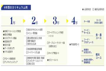 地域の伝統的食材や調理法、行事が気候変動や人口減少で失われ行く現代、食・文化・観光など地域資源を発掘し、活用するとともに、そのいわれを物語化して世界に発信できる人材を養成します。食品衛生や大量調達、観光、おもてなしなどの知識に加え、その背景にある文化や理論、データ分析などを学びます。そのうえで、実習やゼミナールを通じて、地域資源の発掘や利活用企画、おもてなしや映像制作体験などを実践的に体験できるカリキュラムが特徴です。