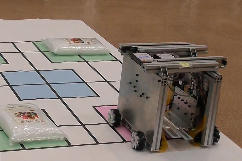 第24回の課題は「令和の米騒動・お米をしっかり運びましょう!」。米袋を運ぶロボットを製作しました。