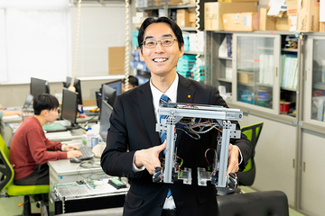 「自分で設計したロボットが、実際に動く瞬間は感動的!」と、ロボット製作の醍醐味を語る西川先生。
