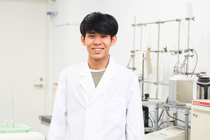 幼い頃から理科全般に興味があり、中でも化学に興味がありました。本学では、1年次の春学期から実験の授業があり、知識と技術を両立して学べることに魅かれ、中学2年生の頃から中部大学への進学を目指しました。