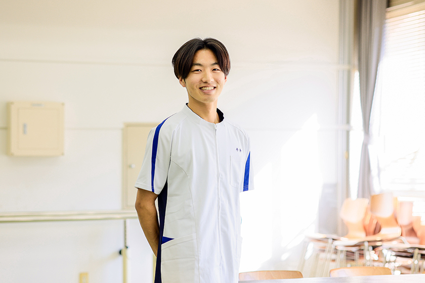 看護師の姉を身近に見て、命に携わる職業に就きたいと感じたこと。16年サッカーをしてきて怪我をした際に復帰に協力してくれたのが理学療法士だったこと。この2つが理学療法士を目指そうと決意した理由です。