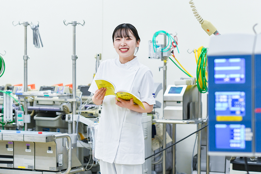 臨床工学技士になろうと思ったのは、人の役に立つ仕事をしたくて、また、機械にも興味があったからです。本学を選んだ理由は、臨床工学技士が扱う最新の医療機器を用いた実習環境が整っている点でした。