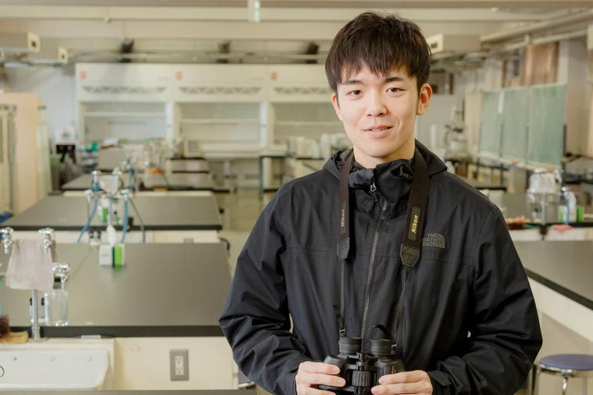子どもの頃から生き物と触れ合い、興味を持っていた私は、今でも、自然の中で鳥類や昆虫の調査を行ってレポートにまとめるなど、大学ならではの学びを楽しんでいます。