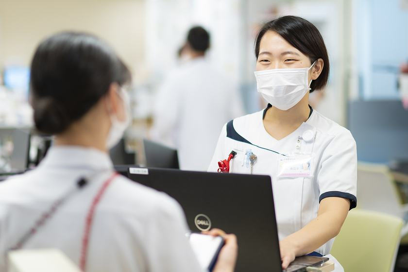 勤務する病院では、がん患者さんの看護に携わっています。がんは早期の発見や治療で治る可能性の高い疾病です。がんの治療法は多様化し、日々進化しています。看護師として新たに身につけなければいけない知識も多く、現在も勉強の毎日。そうした中で担当した患者さんが退院の日を迎えられると、とてもやりがいを感じますね。働き始めて実感しているのは、東京情報大学で身につけた情報を扱うスキルの重要性です。電子カルテの記入や改善策の作成と言ったパソコンの操作はもちろん、仕事の中で情報の収集や発信の方法などがしっかりできていると実感。「情報」の持つ意味を大学のさまざまな授業で学び、深く理解できているからこそだと思います。