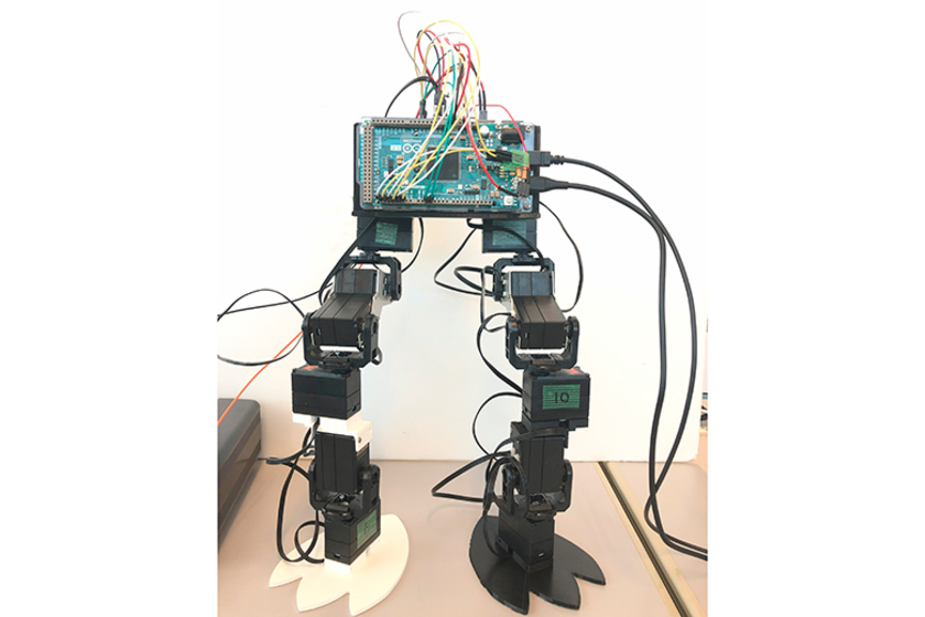 「卒業研究」では、左右に揺れながら歩くペンギンの歩行方法を再現したオリジナルの二足歩行ロボットを製作。それまでの実験とは異なり、すべてを一から開発するのは大変でしたが、成長を実感することができ、自分のアイデアを形にできること、幼い頃からの夢をかなえられたことに大きな喜びを感じました。
