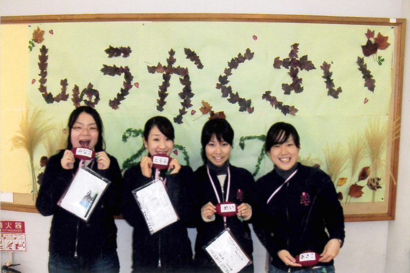 総合演習の授業で「すくすく村」という畑のプログラムを選択、野菜を育てながら自然教育の方法を学びました。収穫祭では実行委員となり、先生方に招待状をお送りしたり、当日のプログラムを決めて運営したり。担当が厳しい先生で、うまくできた!と思った招待状にダメ出しされて作り直したことも、今となってはいい思い出です(笑)。今の園にも畑があります。手を掛けて植物を育てる大切さを子どもたちに伝えるときに、大学での経験が生きています。また、先生の厳しくも温かい指導のおかげで、社会で働き続けるために必要な強さが身についたと感謝しています。今でも付き合いが続くよい仲間たちとの出会いも、大学時代の貴重な財産です。
