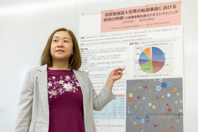 専門とする分野は高齢者看護領域で、終末期看護や認知症ケア、ケアマネジメントを専門に「最期まで人間らしく、尊厳をもって人生を全うすること」を支えるための研究を追究しています。現在の研究の中心は高齢者施設等で起きている介護事故(有害事象)に関する分析。このほか、認知症患者とその家族介護者に関する裁判例の内容分析、終末期における意思決定支援、音楽療法の効果に関する研究、高齢者への潜在的な年齢差別(エイジズム)に関する実態調査など、高齢者のQOL(生活の質)向上や、安全なケアの実現に向けた研究など、幅広く取り組んでいます。その原動力となるものは、身体のみならず心のケアを必要とする方々に対して“自分にできることがある”という想い。すべての人の「しあわせ」をめざして、日々取り組んでいます。
