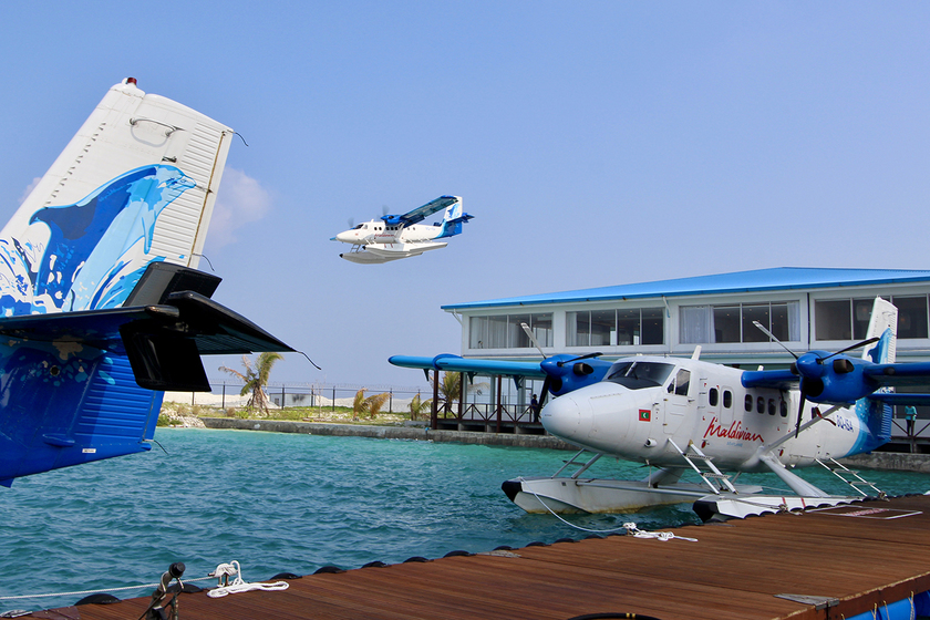 水上飛行機は観光の交通手段だけでなく災害時の救助救援活動にも威力を発揮します(モルディブの水上空港)