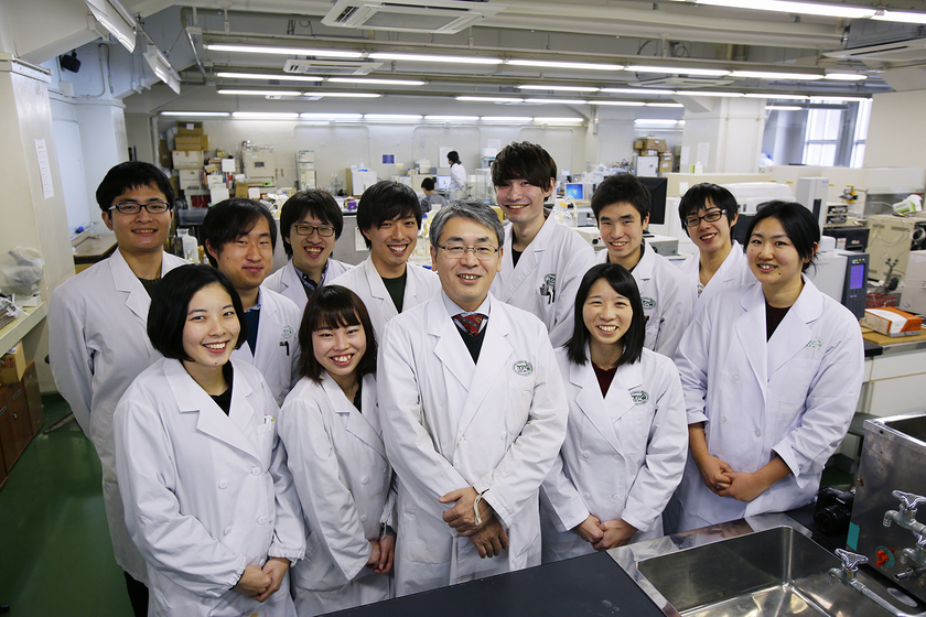 物質応用化学科は2018年に創設80周年を迎えた伝統のある学科。小嶋先生が指導する研究室は50年以上無機材料の研究を行っており、その間に積み上げてきた知見は、産業界でも高く評価されています。小嶋先生は“この分野のNo.1を目指す”という気概をもって学習研究に取り組み、後進の育成に励んでいます。「材料の粒径や形状、構造、分布および組織を制御することで、無機材料は多様な分野で活用できる材料になり得ます。まだ知られていないことも多く、とても研究しがいのある材料だといえるでしょう」