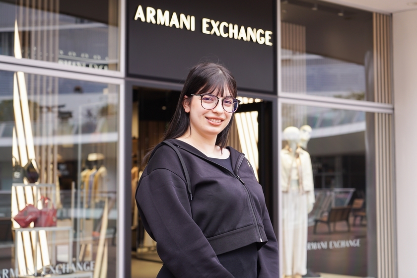 ジョルジオ アルマーニ ジャパン株式会社/服装学部 ファッション社会学科 /2024年卒 /入社後、埼玉県の大規模ショッピングモール内の店舗に勤務。その後、新規店オープンに伴い異動。新規顧客の獲得や店舗の雰囲気づくり、スタッフ同士の意思疎通など一から店舗を作り上げる醍醐味を経験。「今は現場で接客をするのがとても楽しいです。いずれは、VMD(ビジュアル・マーチャンダイジング)にもっと関わり商品や売り場をより魅力的に伝えられるようになりたいです」と将来の目標を語ってくれた。