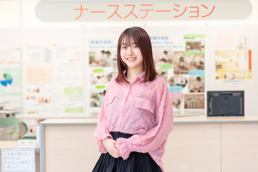 1年後期の基礎看護学実習では、地域病院の看護師さんを1週間シャドーイング。看護師の役割や環境について実践的に学べたことで、2年次からより主体的に取り組めるように!今興味を持っているのは小児の分野。小児看護学の授業「赤ちゃん先生」では、地域の子どもたちとのふれあいを通して、学んだ知識を再確認できました。