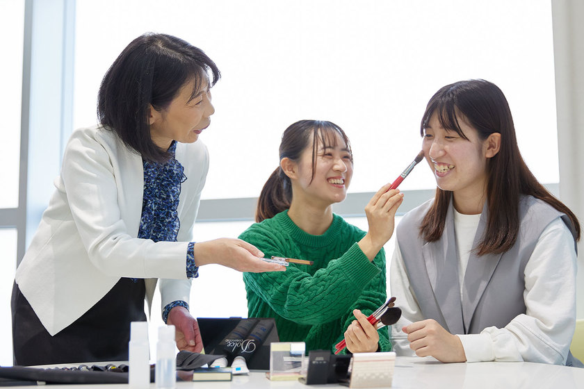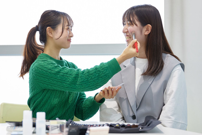 倉地先生はセラピーメイクを「看護の考え方を広げるきっかけにしてほしい」と話します。医療は「症状を取り除くこと」が目的ですが、人のつらさはそれだけでなくなるとは限りません。メイクのように、気持ちを明るくしたり安心させたりする関わり方も、ケアの一つです。さまざまな選択肢を知っていることが、「目の前で苦しむ人への寄り添い方」を多角的に考えるきっかけになります。宝塚大学には、セラピーメイク以外にも音楽や絵画など芸術を取り入れたさまざまな授業があり、ケアについて考えを広げる出会いが豊富に用意されています。