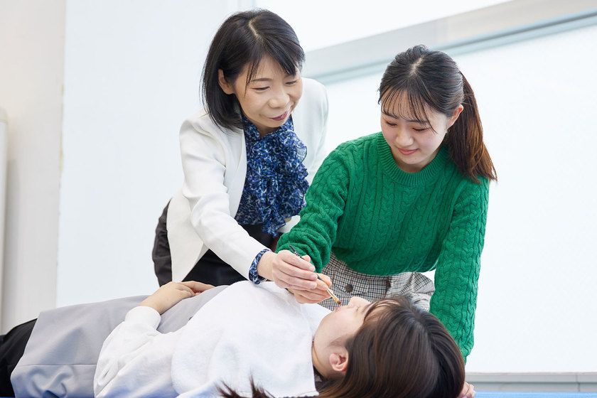 セラピーメイクなどの芸術療法を学ぶことは、心に寄り添うための「引き出し」を増やすことに繋がります。看護師として必要な技術・スキルを高めながら、多様な学びに触れる4年間が宝塚大学で待っています。