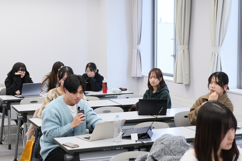 この授業を履修している学生のグループの一つは、「札幌のまちで、人の回遊性が低くなっているエリアをどう活性化するか」という課題に挑戦しました。具体的には、人力で走る三輪車タクシーを、単なる移動手段ではなく、ドライバーがお客さんとの会話や案内を通じて地域をつなぐ“きっかけづくりの場”として活用。大通周辺のにぎわいと、人の流れが途切れやすいエリアを結ぶツアーを企画・実施しました。SNSでの集客や当日の運営も学生自身が担当し、教室の外での実践を通して、リアルな地域課題に向き合う力を育んでいます。