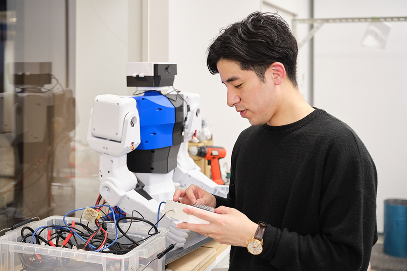 「ロボティクス基礎」を中心に、ロボットを感覚的に捉えるのではなく、数式と論理によって理解することを重視しています。ロボットは自律的に動く存在ではなく、運動学に基づいた数式や制御理論によって一つ一つの動作が成り立っていることを、授業を通して丁寧に伝えています。また、学生が抱きがちな「すぐに高度なロボットが作れる」という理想と現実の差を知ることも重要な学びだと考えており、できないことを理解する過程がエンジニアとしての成長につながると感じています。さらに、産業用ロボットだけでなく、車椅子や義足といった福祉ロボットにも目を向け、人間工学の視点から人を支援する技術の探究を行っています。理論と実験が結びついた瞬間に理解が深まる教育を大切にし、将来的には試行錯誤から理論へと導く授業を目指しています。
