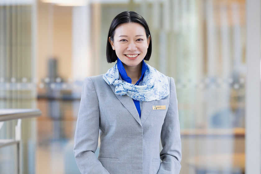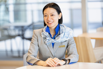全日本空輸(ANA)が就航する都市の国内線・国際線のフライトに乗務し、国内線ではキャビンの責任者である主客室乗務員(チーフパーサー)を務めています。業務で意識しているのは「お客さまが機内で過ごす時間をよりよいものにしたい」という想い。一人ひとりの状況を察知し、気持ちに寄り添ったお声がけやサービスを心がけています。時折お礼の言葉や手紙を頂くこともあり、大きな励みになっています。客室乗務員は世界の最前線を肌で感じることができる仕事です。就航先の文化や世界規模のイベントなど、その時々でフライトの内容は変化します。日本と世界をつなぐインフラとしての使命を意識して、フライトに臨んでいます。