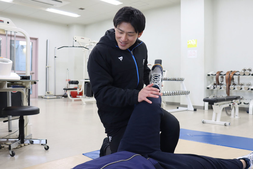 明治国際医療大学では、多様な部活動のほか、陸上競技場・サッカー場・剣道場・柔道場などの競技施設と、附属病院や鍼灸センターといった医療施設がワンキャンパスに集約しており、学生が日常的に選手のサポートに関わることができます。授業で学んだテーピングやコンディショニングなどの技術を、実際に活用しながら経験を重ねることで、確かな実践力を養えます。今野先生は「本物の現場でこそ、判断力と対応力が磨かれます」と話し、教室と現場を行き来しながら学べる体制が、アスレティックトレーナーとしての力を着実に育てています。