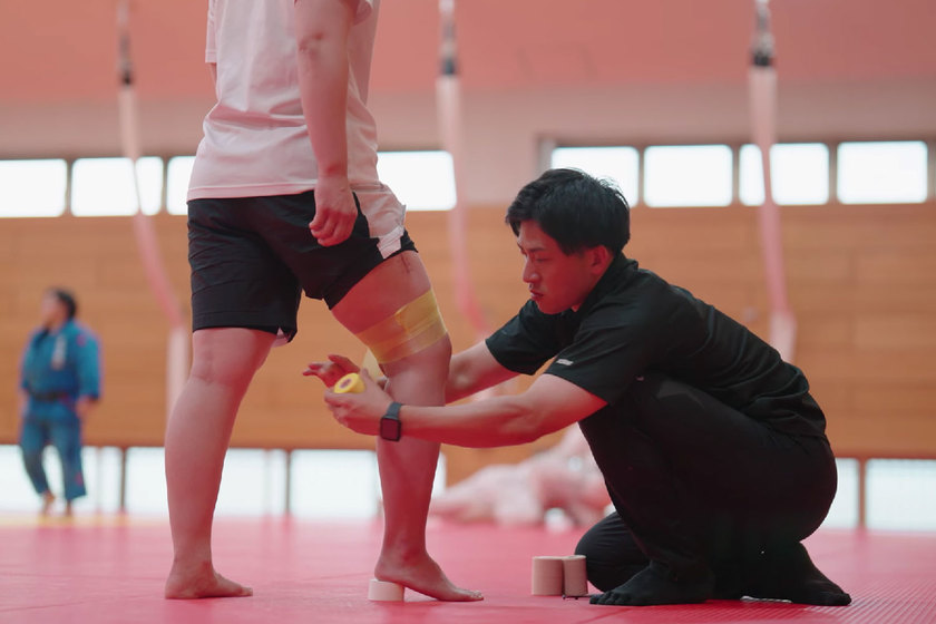 明治国際医療大学では、スポーツ選手のケガ予防や応急処置、リハビリ、コンディショニング管理などを担う「アスレティックトレーナー」の育成に力を入れています。