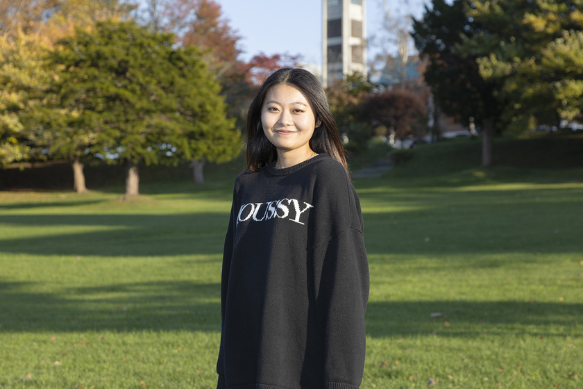 広大な土地でフィールドワークが行えることに惹かれました。当初は酪農に興味があり、「美味しいソフトクリームをつくりたい」と本学に入学。でも、農業を幅広く学んでいくうちに興味のある分野を見つけられました。