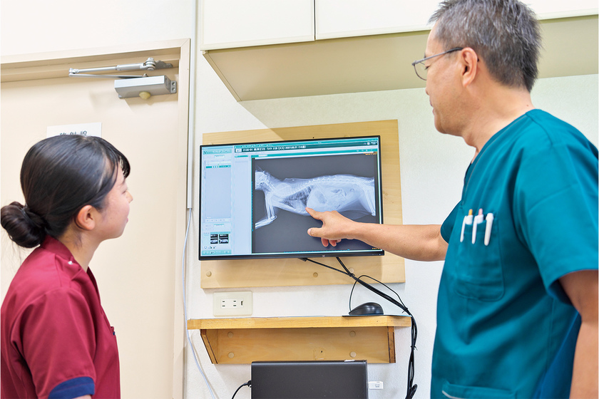本学類の教員を中心に、獣医学類も含めた総勢50名以上の教員が指導にあたります。1・2年次は専門基礎教育を、2~4年次で動物看護に関する専門知識と技術を身につけます。また、「獣医師」「飼い主」「動物」との信頼関係をしっかり構築することで、チーム医療に貢献する“動物看護のスペシャリスト”として育て上げます。スペシャリスト育成を目指す指導によって、状況を先読みした自発的な行動と獣医師の負担軽減や診療の質向上、飼い主への安心も提供できる愛玩動物看護師として活躍可能です。