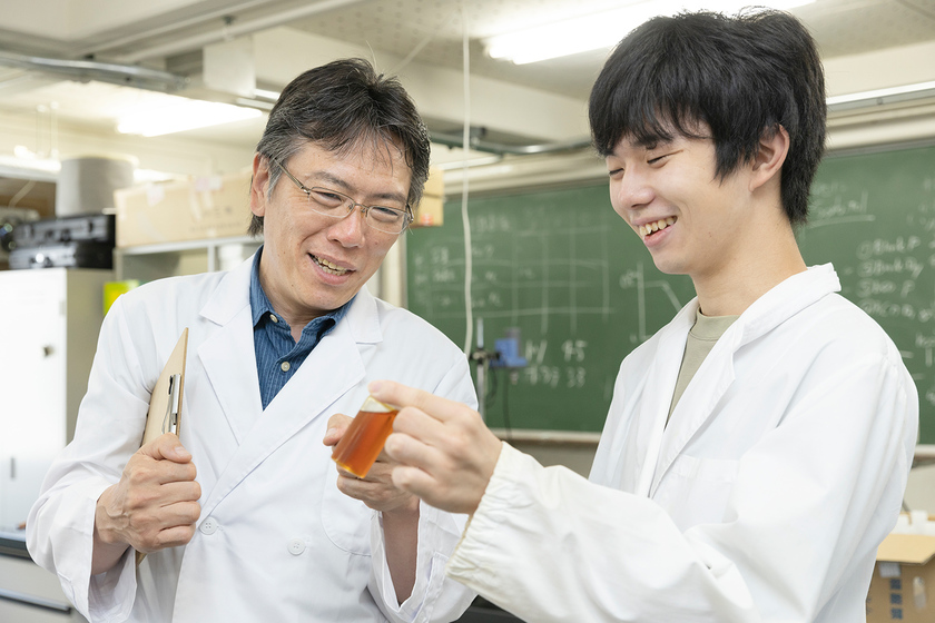 大学は基礎研究が多いというイメージですが、阿部先生のゼミでの研究テーマは食品開発なので、実用化したときの経済波及性も大きく、応用研究・実証研究という部分で学生も楽しんで取り組めるのが特長。学生が手掛ける開発サポートは、農畜水産さまざまな企業から依頼があり、担当となる3年生のグループが企業の思い入れを組んだ上で、開発アイデアを考え実用化を目指す取り組み。値段、品質、衛生面などさまざまな部分に目を向けながらの開発は、経験としてとても貴重なので、就職活動でも大きな武器になるという。