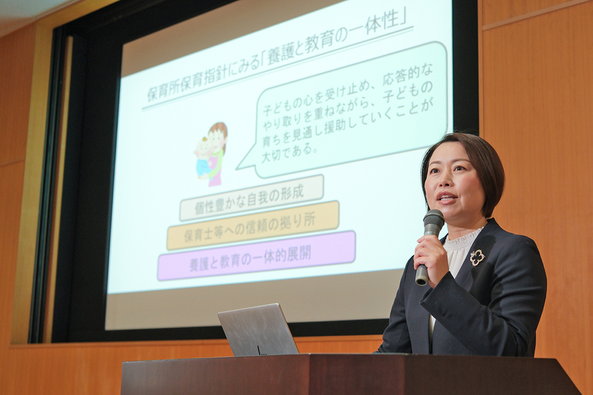 保育の現場では臨機応変な対応が求められますが、それは「無意識」で行ってよいものではありません。私は、無意識は無責任につながると考えています。保育者一人ひとりの行動には意味があり、プロとしてその意味を自覚する必要があります。幼児教育アドバイザーとして研修を行う際には、実際の保育中の写真を用い「今、この場面で何が起きているのか」「この前後に何があったのか」を問いながら考える時間を意図的に作っています。現場の先生方と共に学び合いながら、問い続ける保育の在り方を現場に広げています。