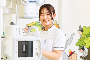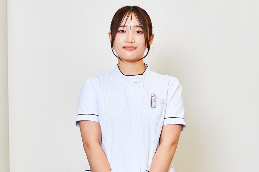 近江八幡市立医療センター 放射線技術科勤務/医療科学部 放射線技術学科/2022年卒/滋賀県立草津東高校卒表後、京都医療科学大学を卒業し、自宅に近い近江八幡市立医療センターで『診療放射線技師として働く』夢を叶えた中川さん。現在もそこに止まらず、マンモグラフィ(乳房X線検査)やアンギオグラフィ(血管造影検査)の研修を受けているとのことで、精力的に活躍中だ。