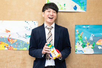 先生の「保育×デジタル」のゼミは、他にはないユニークさで学生にも人気。実際には、ペンタブレットを使って魚や海の生き物を手描きし、その後、絵を誰もが簡単に使えるプログラミングアプリに取り込んで、動きを指示。そしてクラス全員の作品を一つにして、パソコン上で「デジタル水族館」を完成させます。このゼミでは、上手い下手よりも、デジタルによって自分の絵が味のあるキャラクターに変化し「自分の絵が動いた!」という感動を味わえます。ほかにもAIやDX、プログラミングの興味・関心を深める楽しい体験ができるそうです。