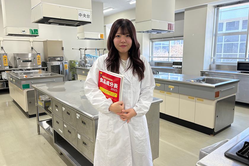 幼い頃から食べることが好きで食の仕事に興味を持ちました。この学校に決めたのは、地域連携が盛んで地元に貢献できる点や、他学科の学生と交流でき、広い視野を持つ栄養士を目指せる点に惹かれたからです。